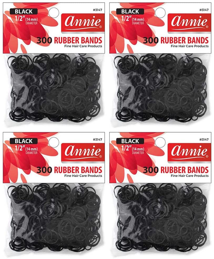 Annie 300 Rubber Bands Black Medium 1/2" (Pack of 4) Total 1200 rubber band