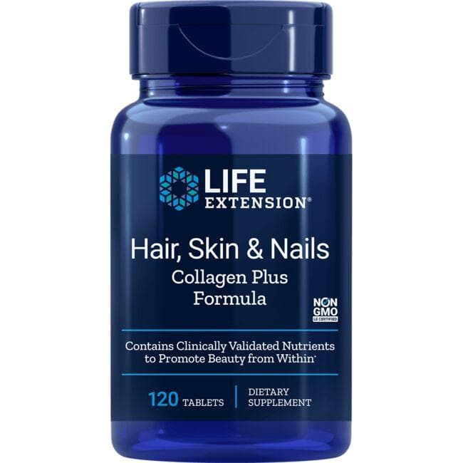 Biotin promotes healthy skin, hair and nails and supports healthy hair and nails in those who are deficient. Silicon supports healthy collagen, and strong and youthful hair, skin and nails. Give hair, skin and nails the nourishment they need with Hair, Skin & Nails Collagen Plus Formula from Life Extension®. Collagen plus essential nutrients equals lasting beauty!