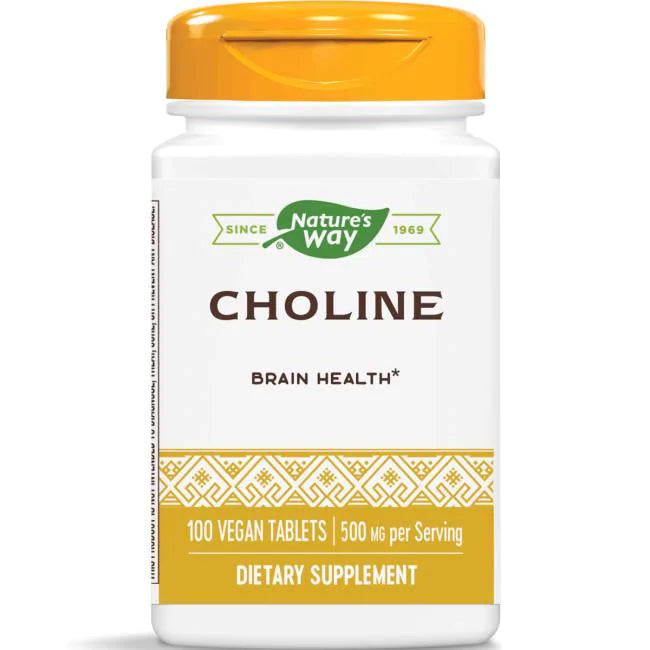 Choline is an essential precursor to acetylcholine, a stimulatory neurotransmitter. It is involved in healthy brain function and essential for normal function of all cells. Nature's Way Choline is gluten free and vegan, and delivers 500 mg per tablet.